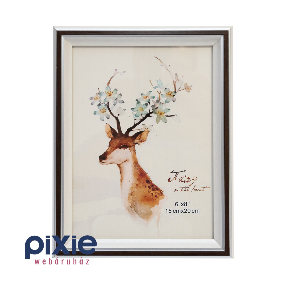 Fa hatású, fehér, barna, és ezüst színű, támasztható asztali képkeret.