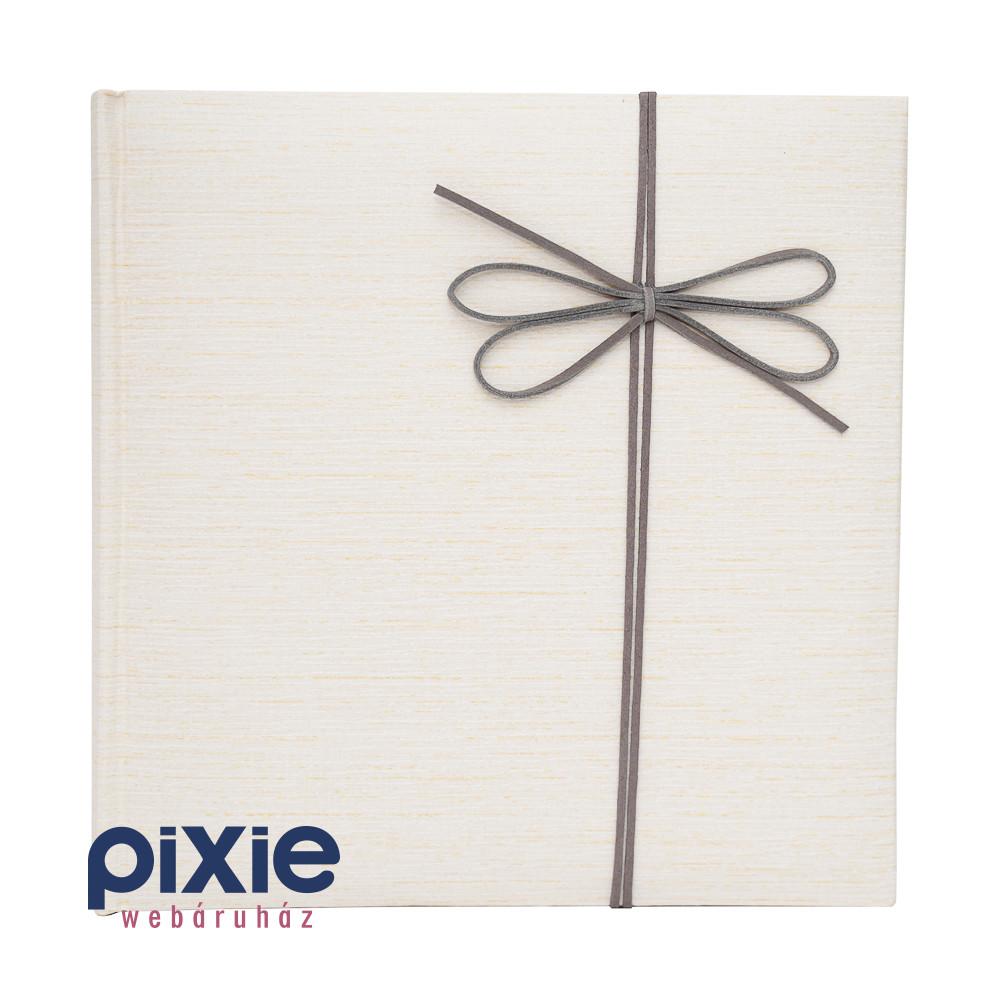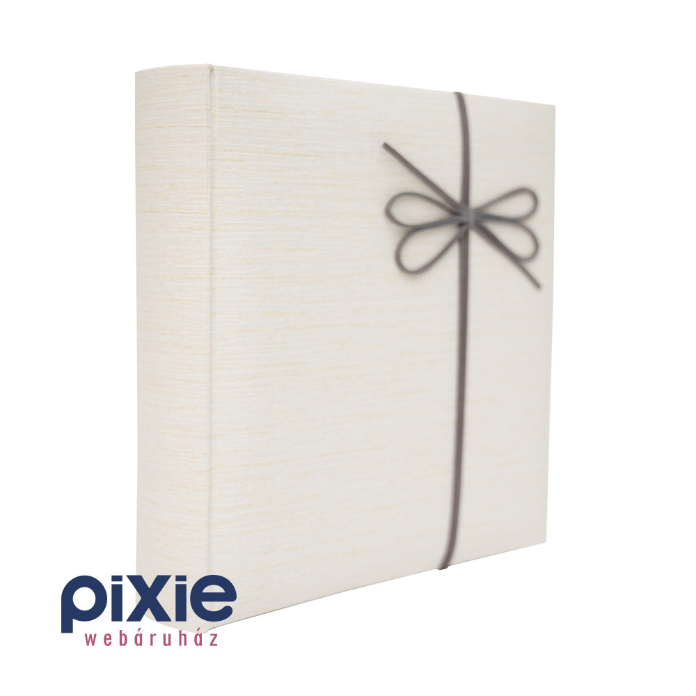 Egyszerű masni mintás borítójú fotóalbum letisztult, modern megjelenésével tökéletes választás azoknak, akik stílusosan szeretnék megőrizni legkedvesebb emlékeiket. A vlágosdrapp, finoman texturált borító és a szürke masni kifinomult, harmonikus összhatást teremt, így az album bármilyen alkalomhoz illik.
