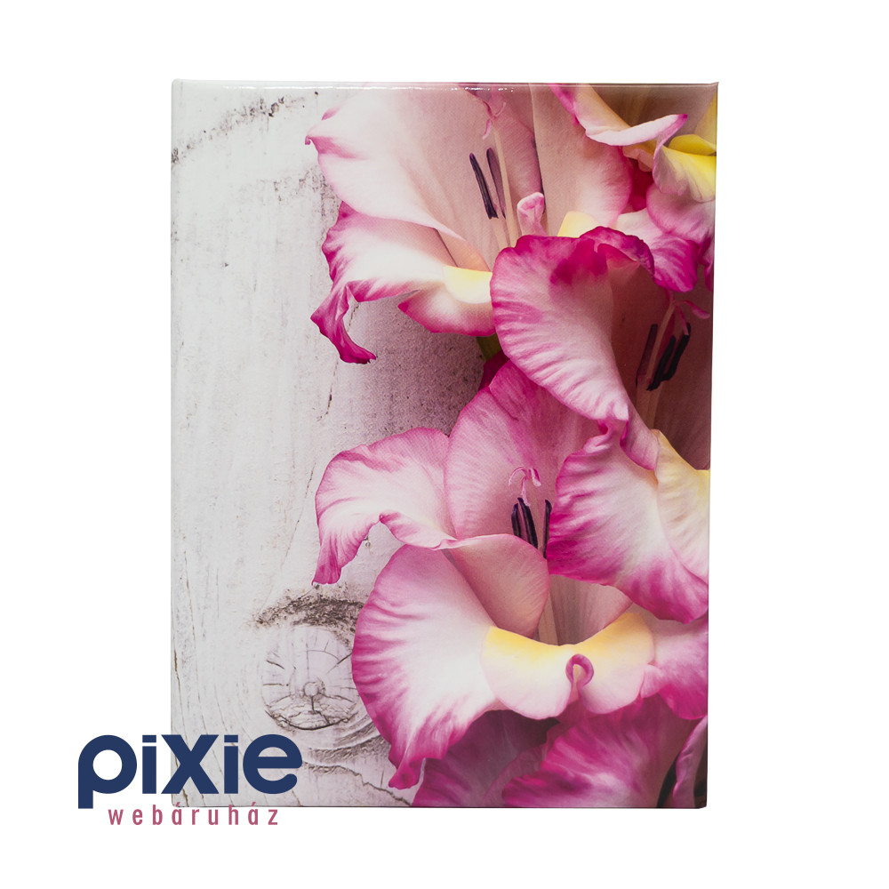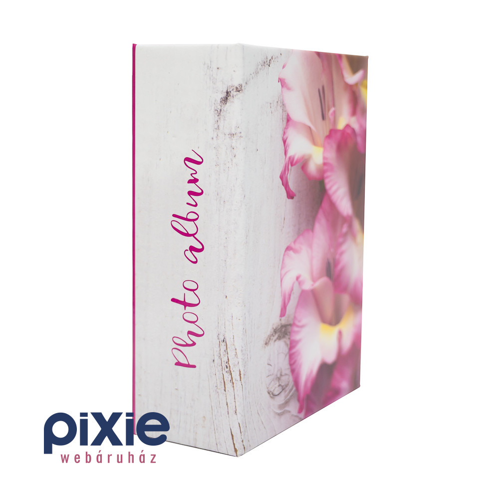 Ez a romantikus hangulatú fotóalbum a természet szépségét és a rusztikus eleganciát ötvözi. A borítón élénk rózsaszín és fehér kardvirágok díszítik a jobb oldalt, míg a háttér egy fehérre festett, texturált fa felületet idéz. Tökéletes választás családi emlékekhez, tavaszi pillanatokhoz vagy ajándéknak egy különleges alkalomra.