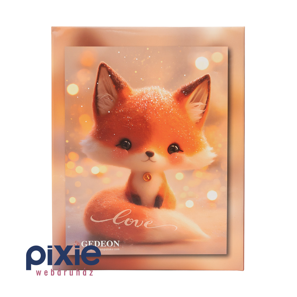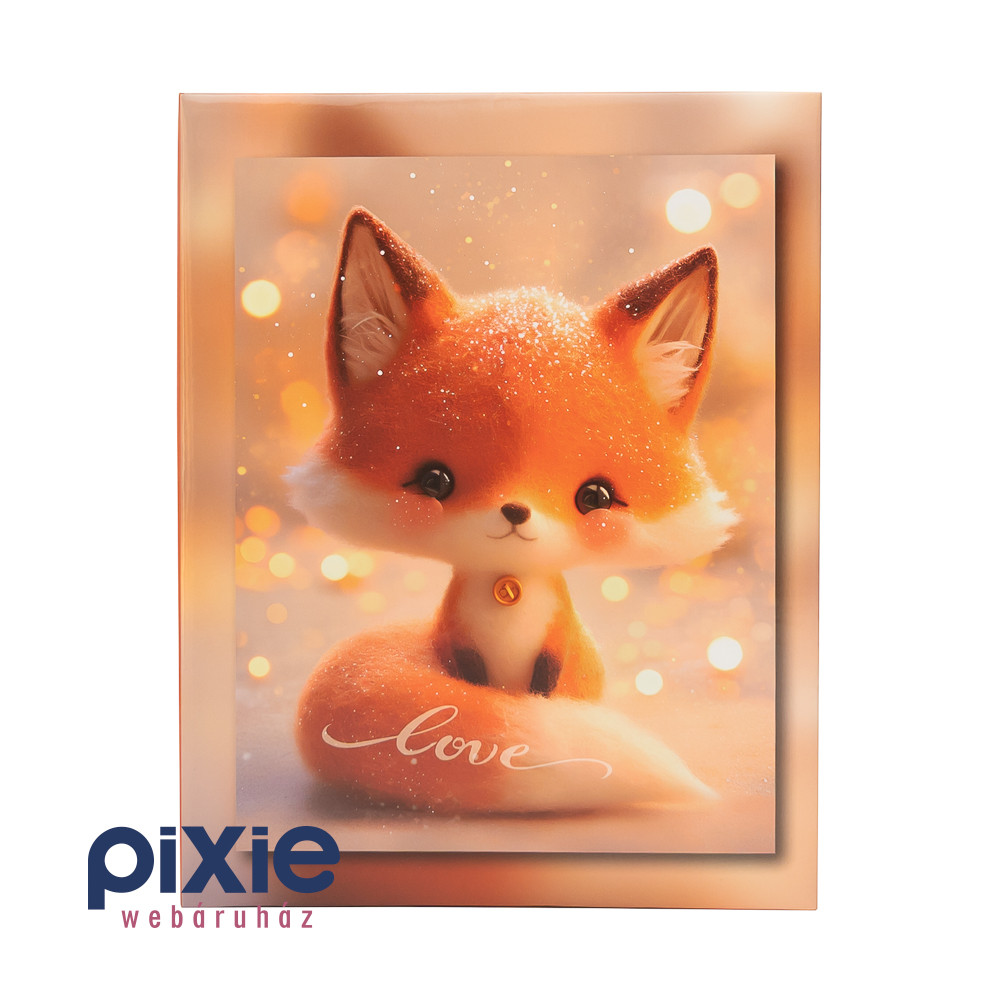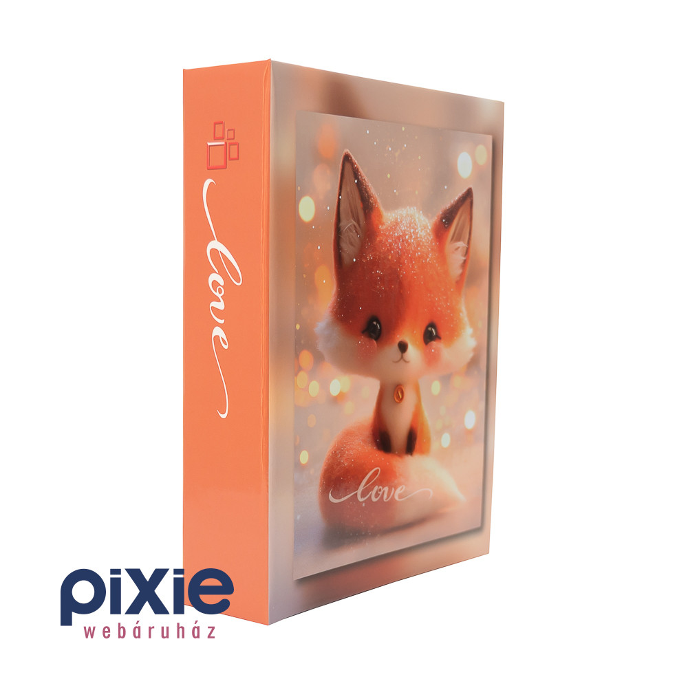 Ez a különleges „Love” fotóalbum egy álomszép rókás illusztrációval varázsolja el a szíveket. A meleg fényekkel és bokeh hatással díszített háttér, valamint a rózsaarany keret elegáns megjelenést kölcsönöz a borítónak. A „love” felirat finom kalligráfiája tökéletesen kifejezi az album hangulatát: szeretetteljes, meghitt és örök.