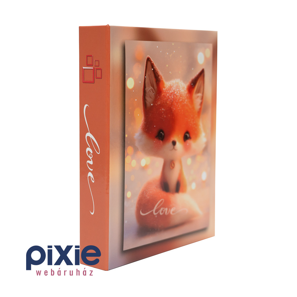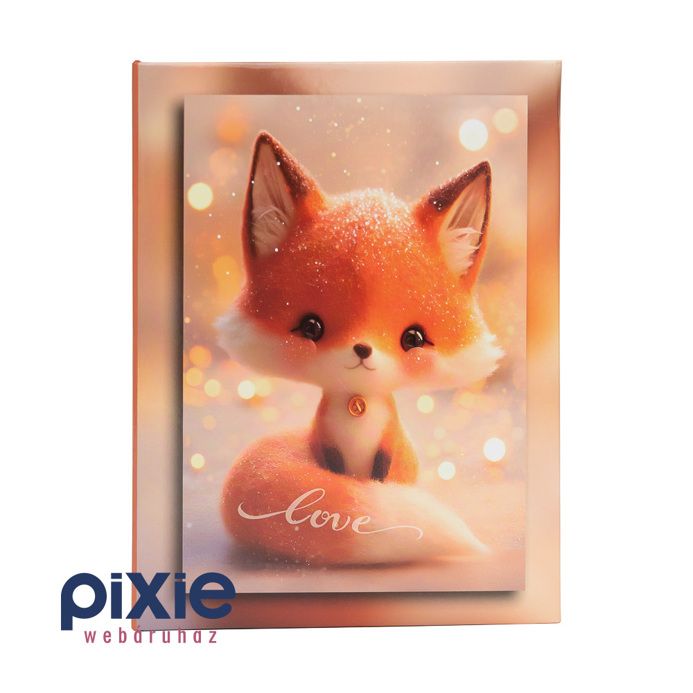 Ez a különleges „Love” fotóalbum egy álomszép rókás illusztrációval varázsolja el a szíveket. A meleg fényekkel és bokeh hatással díszített háttér, valamint a rózsaarany keret elegáns megjelenést kölcsönöz a borítónak. A „love” felirat finom kalligráfiája tökéletesen kifejezi az album hangulatát: szeretetteljes, meghitt és örök.