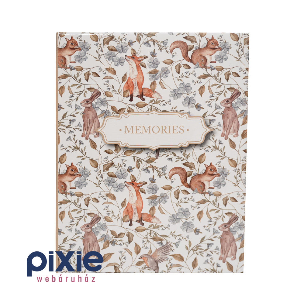 Varázsolja maradandóvá a közös pillanatokat ezzel a gyönyörű kivitelezésű erdei állatos fotóalbummal. A borítót díszítő kedves figurák – a ravasz róka, a fürge mókus és a félénk nyuszi – a természet nyugalmát és báját idézik meg otthonában.