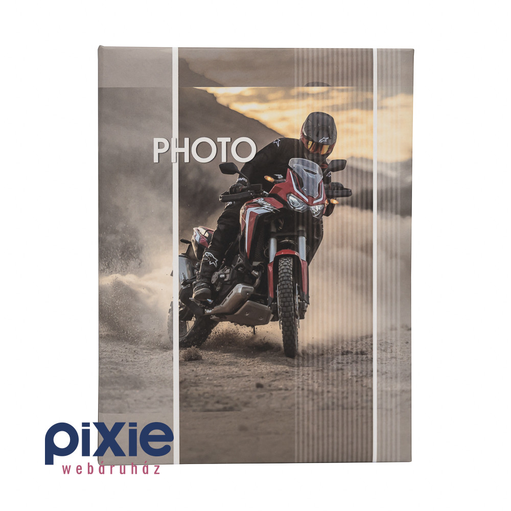 Ez a látványos fotóalbum igazi adrenalinlöketet kínál a motorozás szerelmeseinek! A borítón egy dinamikus jelenet látható: egy piros túramotor száguld porfelhőt kavarva, háttérben lenyűgöző hegyvidéki tájjal és naplementével. Ideális választás azoknak, akik utazásaik, túráik vagy versenyeik emlékeit szeretnék stílusosan megőrizni.