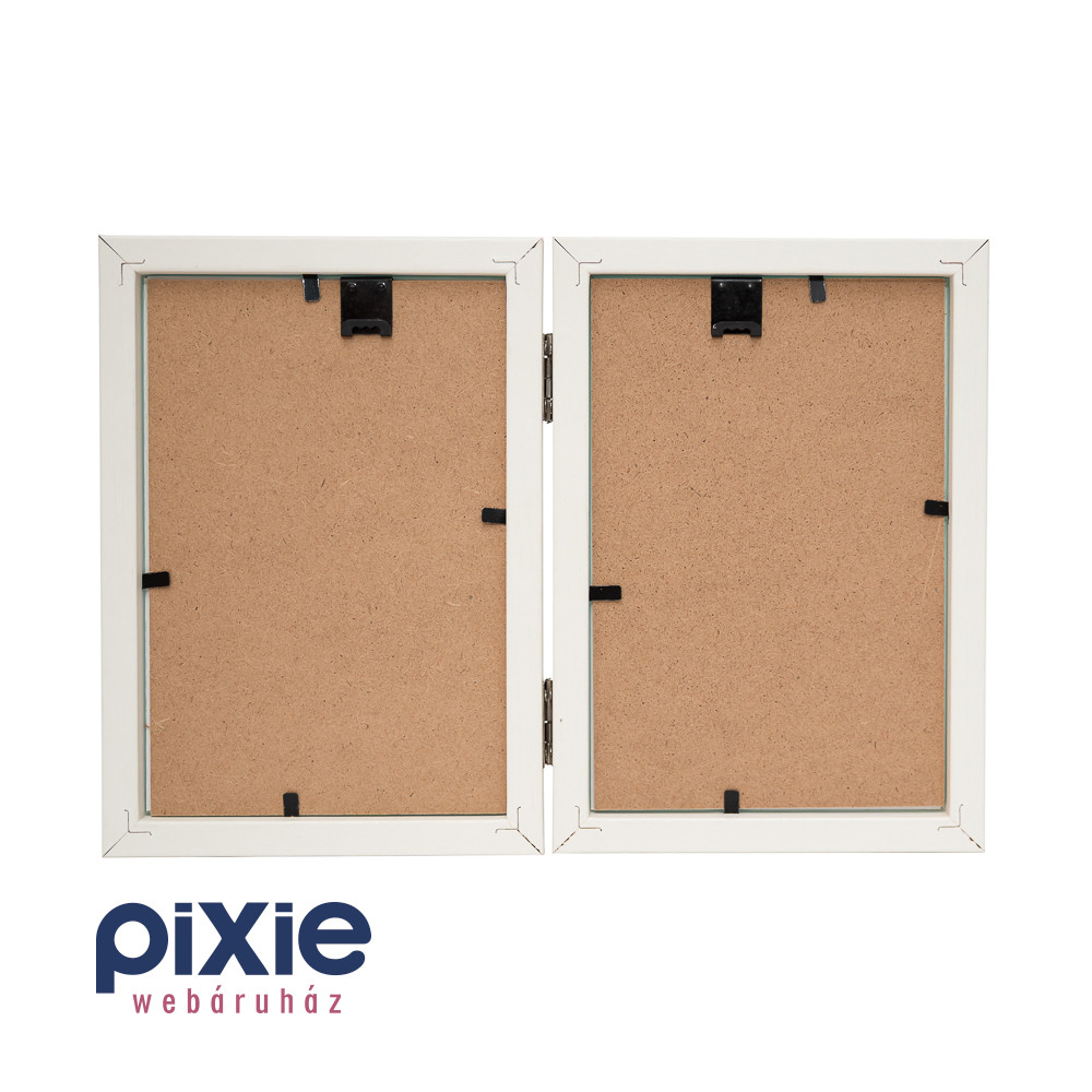 Szétnyitható két képes képkeret, törtfehér színben.