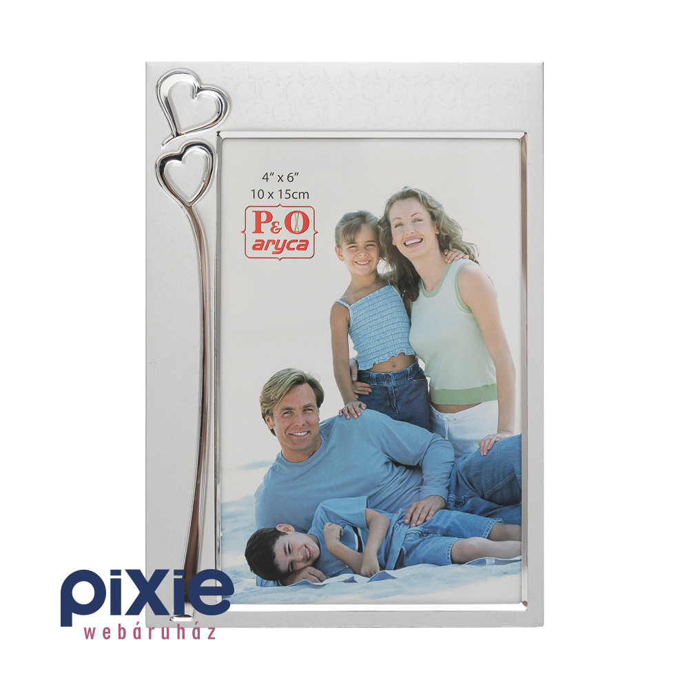 Dobd fel otthonod vagy irodád hangulatát ezzel a stílusos, ezüst színű, fémből készült képkerettel! A keret bal oldalán végigfutó, króm díszítésű szívecskék romantikus és egyedi megjelenést kölcsönöznek, így tökéletes választás különleges emlékek, például esküvői vagy családi fotók számára.