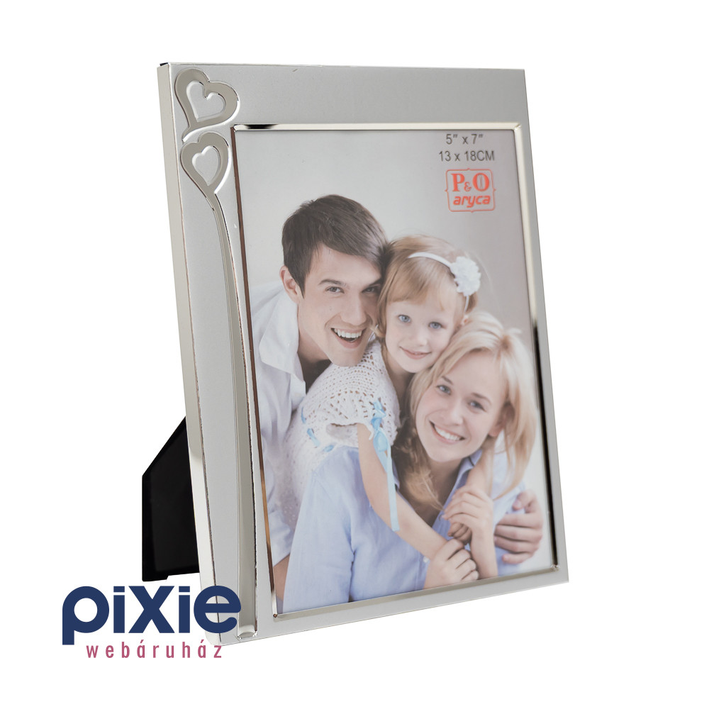 Szívekkel díszített ezüst színű fém képkeret – 13 x 18 cm-es fényképnek